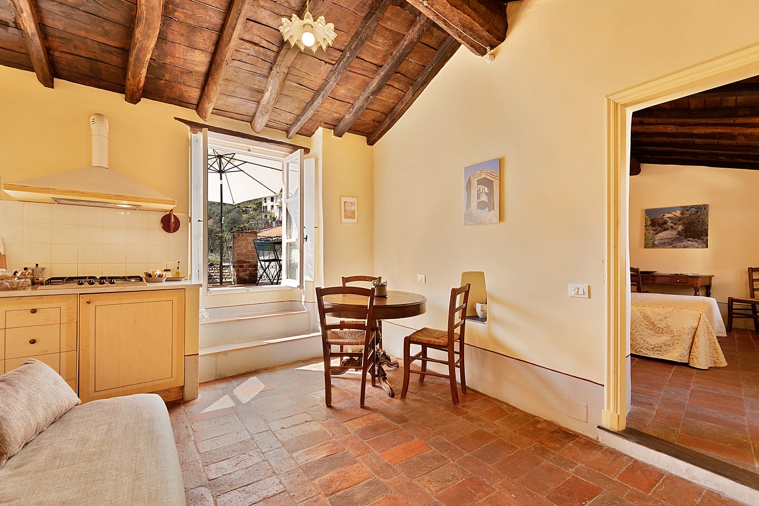 Pensato per chi cerca tranquillità e autenticità, CODEGLIA offre ambienti armoniosi dove la ristrutturazione valorizza gli elementi storici esistenti. L’arredo, sobrio ed essenziale, richiama il gusto della tradizione ligure senza rinunciare alla comodità. L’appartamento comprende soggiorno con divano letto, angolo cottura spazioso, camera matrimoniale e bagno.