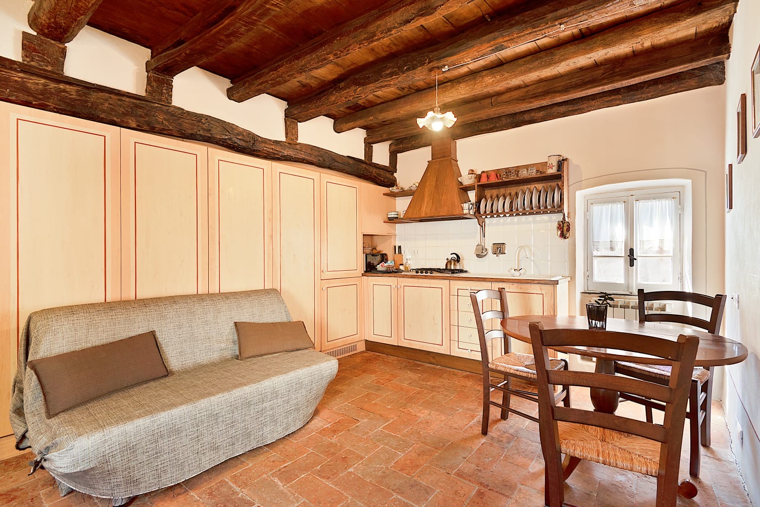 L’appartamento CASTÈ accoglie gli ospiti in un ambiente che riflette pienamente l’anima autentica del borgo di Casté. Ristrutturato nel rispetto della struttura originaria, conserva materiali e atmosfere tradizionali, integrati con soluzioni funzionali pensate per il comfort contemporaneo. Si affaccia direttamente sull’antica corte interna ed è composto da soggiorno con divano letto, ampio angolo cottura, camera matrimoniale e bagno.