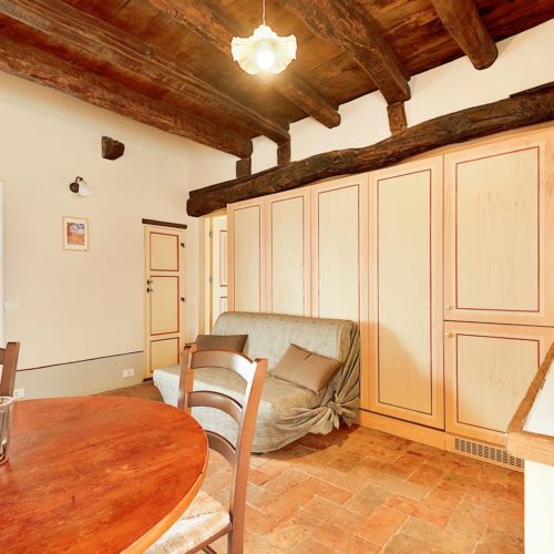 L’appartamento COZZANO si distingue per il suo equilibrio tra atmosfera storica e funzionalità moderna. Ogni ambiente è stato recuperato con attenzione, preservando il carattere originario della struttura e creando uno spazio accogliente per soggiorni immersi nella quiete del borgo. Si compone di zona giorno con divano letto, cucina, camera matrimoniale e bagno, con accesso diretto alla corte condivisa.